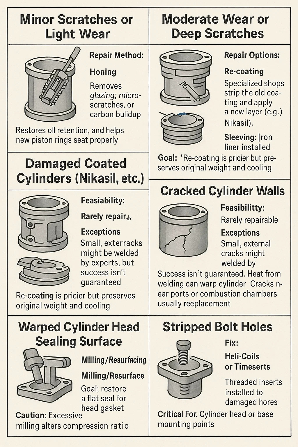 Absolut, motorcykel cylindre kan ofte repareres afhængigt af skadens type og sværhedsgrad. Her er en praktisk oversigt: