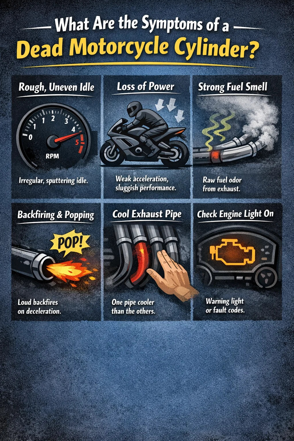Det mest direkte svar: Hvis din motorcykel kører hårdt, har mærkbart nedsat effekt, lugter af uforbrændt brændstof eller fejltænder i tomgang og under belastning, er der en stor chance for, at en af dine cylindre er holdt op med at skyde. Denne artikel leder dig gennem hver metode til at bekræfte det, hvad der forårsager det, og hvordan du løser det.